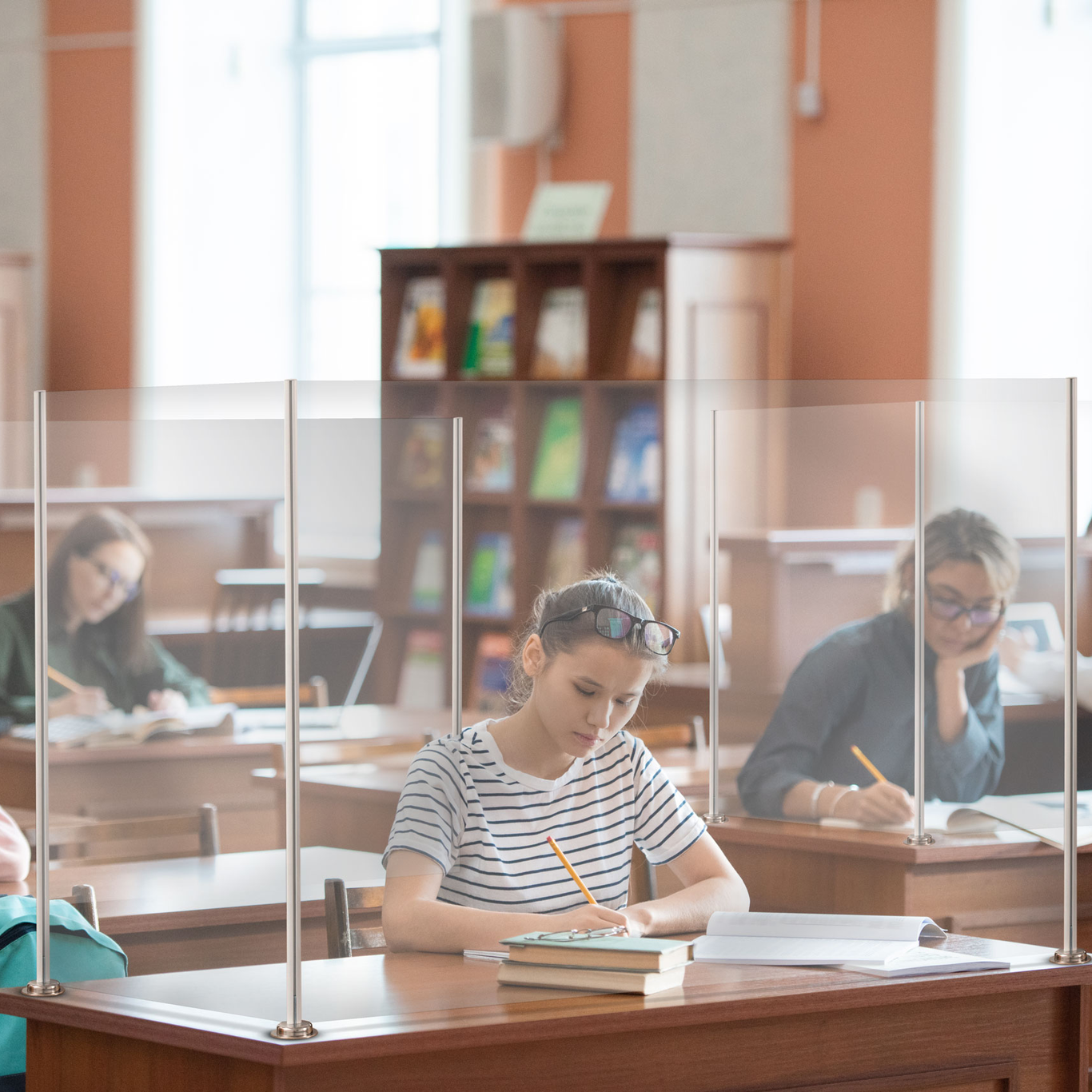These desk dividers are designed to go around all 3 sides of the desk to protect staff from all 3 sides. The simplistic design looks great and requires less space than other alternatives such as acrylic (plastic) screens with feet or frames.